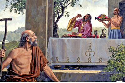Gesù ci pone sempre davanti a due realtà, a due atteggiamenti, a due proposte di vita tra le quali poter scegliere. Nella parabola sono presentati due personaggi uno povero e mendicante e un ricco. La differenza che sottolinea Gesù non è nella loro posizione sociale ma nel diverso approccio verso la vita. Per prima vi è il ricco che pensa a trascorrere le giornate solo a banchettare e a soddisfare i propri desideri. Non si cura degli altri che gli stanno intorno e neanche pensa alle loro necessità e ai loro bisogni. Egli pensa solo a se stesso. Poi arriva il mendicante che è uno escluso dal consenso sociale: è trattato peggio dei cagnolini; è un emarginato, non ha di che sostenersi. A questi due atteggiamenti poi corrispondono due realtà che tra loro sono incomunicabili: il paradiso e l'inferno. Sono la rappresentazione della nostra scelta di vita: quanto interviene Dio nella nostra vita? Come lo dimostriamo, nella carità, nella nostra fede? La risposta a queste domande non è il castigo di un Dio giudice e senza misericordia ma è la conseguenza della nostra scelta di vita, attuata in piena libertà e che Dio poi rispetta. Dio ci offre continuamente la possibilità di salvezza e la stessa parabola ne parla. È Dio che «aveva già parlato nei tempi antichi molte volte ed in diversi modi ai padri per mezzo dei profeti» come dice l'autore della Lettera agli Ebrei; e ha anche mandato il suo Figlio. L'accenno finale della parabola si riferisce proprio alla redenzione che si compie attraverso la morte e resurrezione di Gesù Cristo. Noi, dunque, non abbiamo scusanti per la nostra negligenza e abbiamo il dovere di annunciare questo messaggio di salvezza a chi non lo ha ancora recepito, perché Gesù ci dice: «quello che vi dico nelle tenebre ditelo nella luce, e quello che ascoltate all'orecchio predicatelo sui tetti».